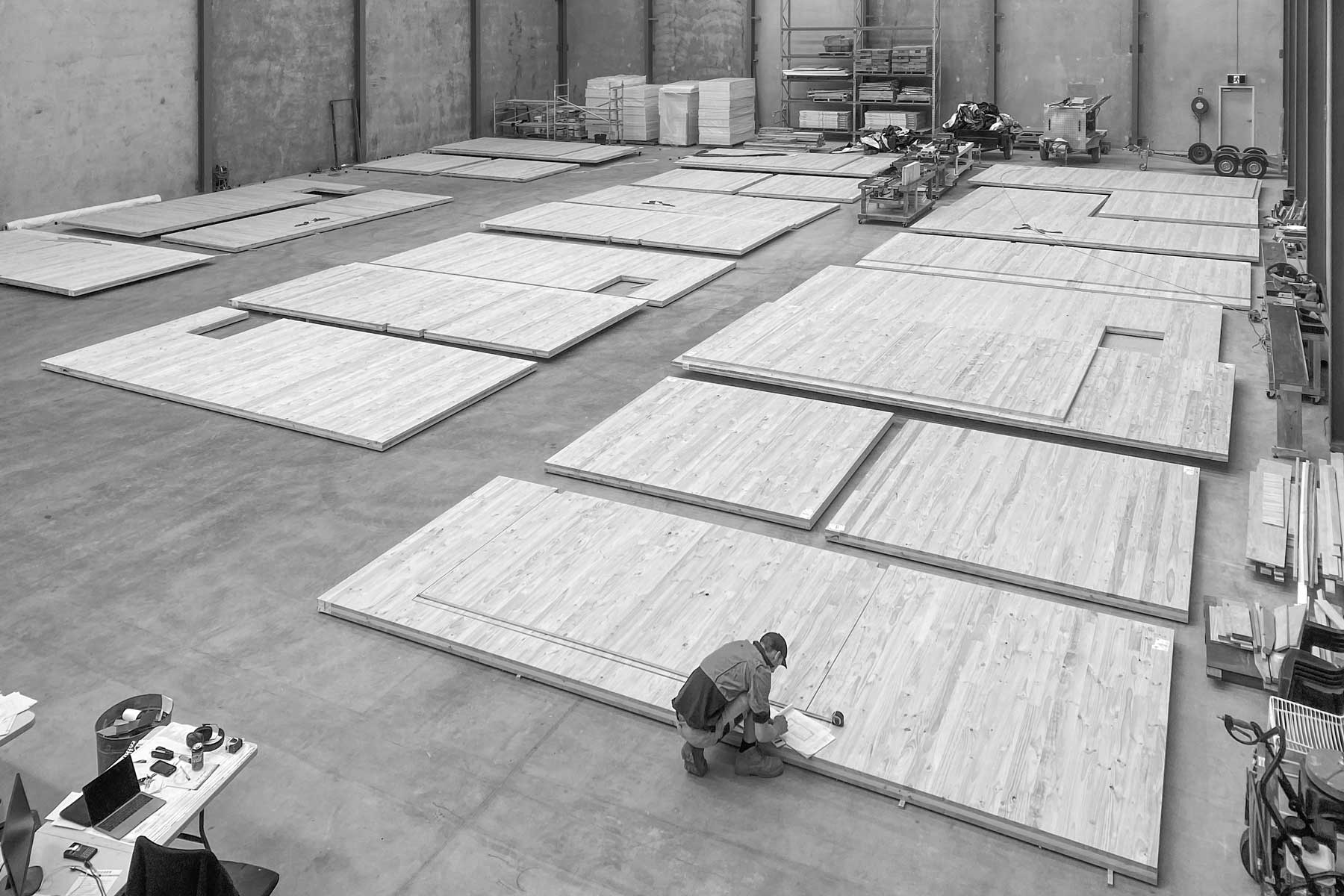 Our collaboration with the construction company FabPreFab was our first foray into using CLT. FabPreFab are a company focused on delivering high-quality, prefabricated homes. We began small, with a modular twenty-square metre, single module dwelling called Minima. We now have a whole host of Minimas on the factory floor, many of them larger homes, all of them creating healthy environments for the people who will use them.