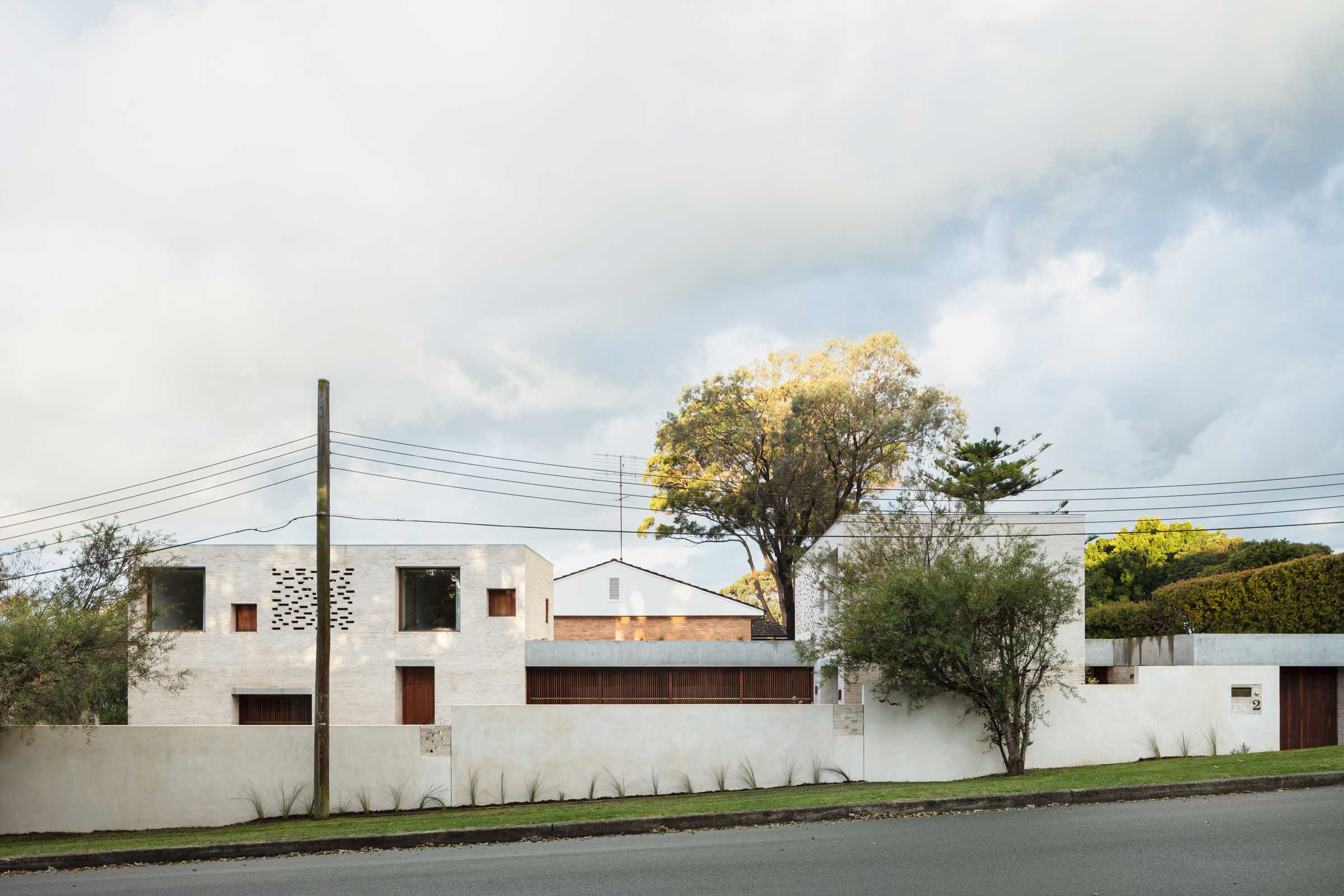 Curl Curl House is, in essence, a walled garden house. In its context, it feels calm, confident, and quiet. Its twin sentinels sit behind their boundary wall, peering above the fence and visible between growing greenery.