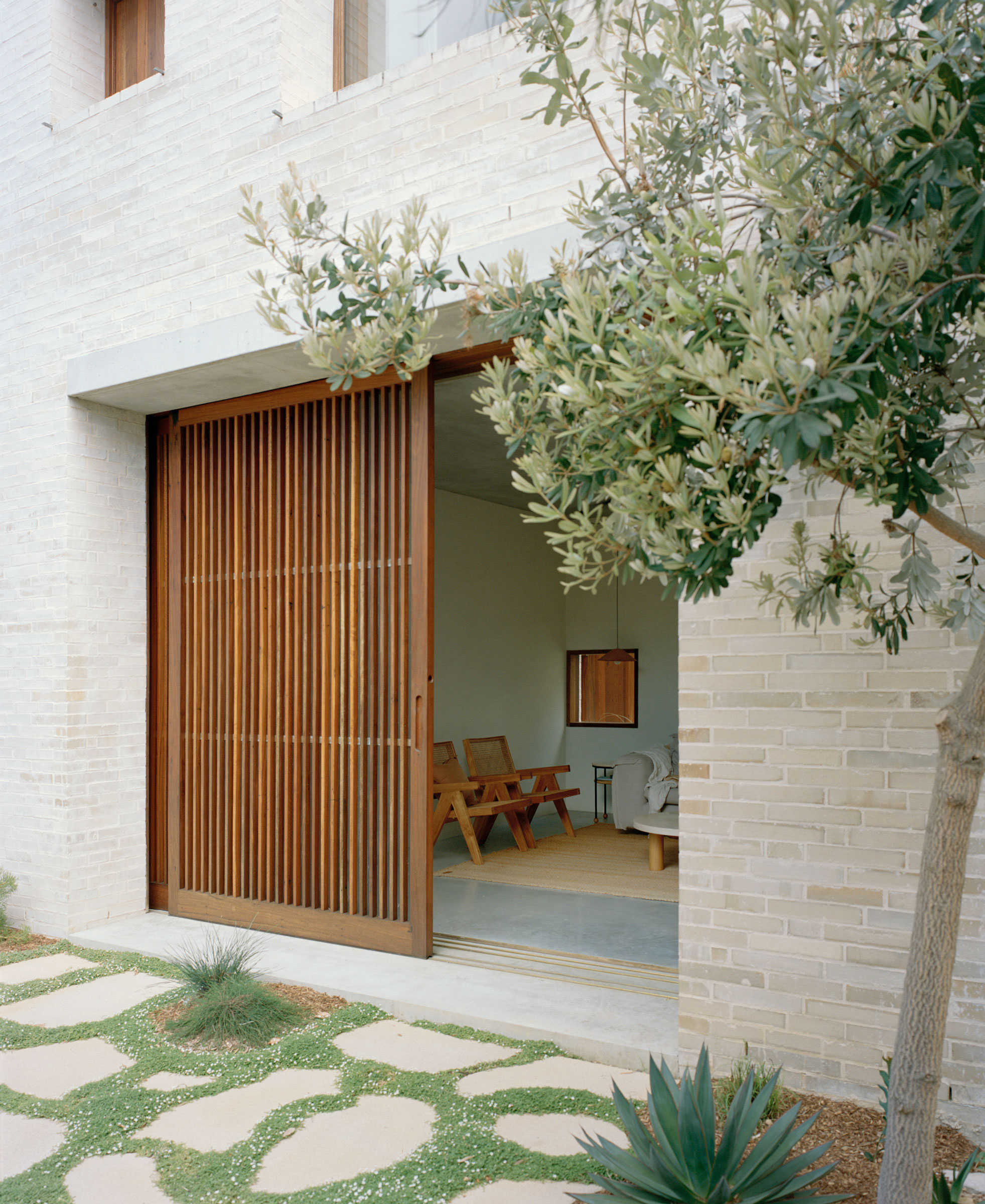 - 2. A sliding timber screen opens the living room onto the garden.