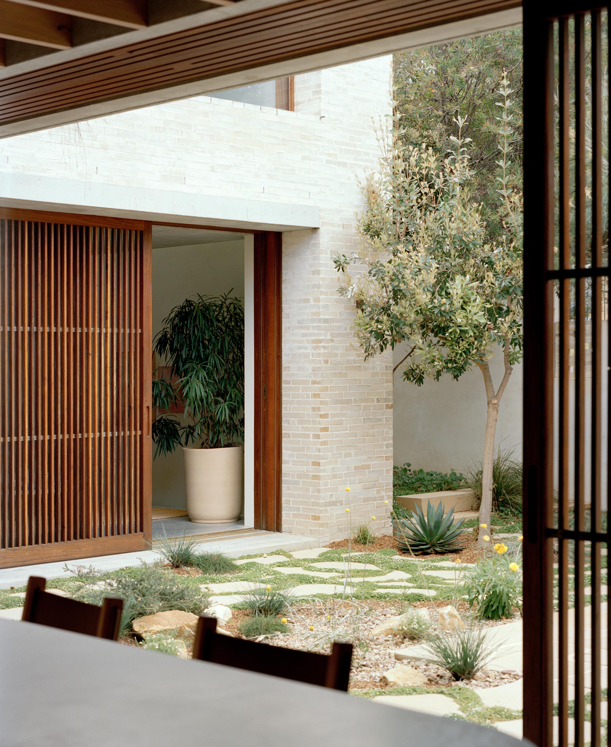 Our design approach was inspired by time spent in Mexico City, where we were drawn to the urban condition we found there. In this densely populated metropolis, houses were often hidden behind walls, creating garden oases within. Walking the city’s streets, we saw defensive perimeter walls that were softened by rambling plants and trees poking their boughs beyond their boundaries. The result is a city where homes feel secluded, yet still offer intrigue to passers-by.